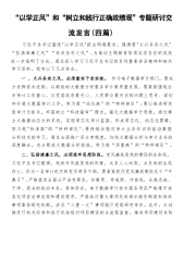 “思想大解放、作风大转变、行动大提速活动”暨"走在前、作表率"专题研讨会研讨材料根据会议安排,结合学习贯彻×委×政府主要领导调研××时的讲话要求、×委×政府主要领导调研城××时讲话要求,以及××"思想大解放、作风大转变、行动大提速"活动部署安排,以“高品质引领和推动各项工作走在前作表率”为主题,作一简要研讨发言,不妥之处,敬请批评指正。一、强学习,持续改进思想作风。以更高的政治站位,深学细悟,全面准确把握习近平新时代中国特色社会主义思想及重要讲话的精神实质。深刻把握"两个确立"的决定性意义,树牢"四个意识",坚定“四个自信",坚决做到“两个维护”,心怀"国之大者"。通过积极参加区委理论中心组、...