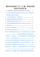 蓝秘书讲话系列119(38篇)湖南省常德市委书记周德睿公开讲话文章汇编目录在审议政府工作报告时的发言........................21.强化政治担当的力度空前。深入学习践行XJP新时.....52.落实中央决策部署的力度空前。对照XJP总书记提.....53.推动高质量发展的力度空前。中国特色社会主义进入..64.打好三大攻坚的力度空前。面对防范化解重大风险、..65.防范化解风险的力度空前。忘记风险是最大的风险。..66.改善人民生活的力度空前。始终坚持以人民为中心的..77.全面从严治党的力度空前。坚决落实中央全面从严治..7心中若有桃花源,何处不是云水间...........
