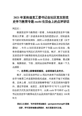 2021年某街道党工委书记在社区党支部党史学习教育专题zuzhi生活会上的点评讲话