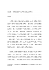 在应急干部学党史读书心得报告会上的讲话同志们:今天我们举办学党史读书心得报告会,是省应急系统党史学习教育方案确定的重要内容、是创新学习方式的重要载体,也是鼓励引导全系统干部自觉学习、自主学习的有益探索。刚才八位同志作了精彩的报告,分享了各自的学习心得,基本达到了学史明理、学史增信、学史崇德、学史力行的目的,八位同志的发言角度不同,但都体现了真学乐学的态度、善学会学的方法、学有所获的成果,反映了全系统党员干部学习党史的共同收获,也使每一位同志对照八位同志的读书心得体会,对自己的学习状态、学习成果、学习成效进行检视反思和自省,从而使大家进一步增强学习的动力,推动党史学习教育走深走实。局党组高度重视...