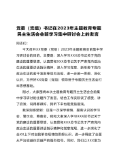 党委(党组)书记在2023年主体教育专题民主生活会会前学习集中研讨会上的发言