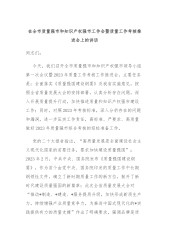 在全市质量强市和知识产权强市工作会暨质量工作考核推进会上的讲话同志们:今天,我们召开全市质量强市和知识产权强市领导小组第一次会议暨2023年质量工作考核工作推进会,主要任务是:全面落实《质量强国建设纲要》及我省实施意见,按照全省质量发展大会的安排部署,认真分析存在问题,深入开展质量提升行动,加快推进质量和知识产权强市建设工作;同时,对照2023年考核标准,深入分析存在的问题和漏洞,进一步压实工作责任,高标准、严要求、高质量做好2023年质量强市综合考核的迎检准备工作。党的二十大报告指出,“高质量发展是全面建设社会主义现代化国家的首要任务,要求加快建设质量强国”;2023年2月,中共中央、国务院...