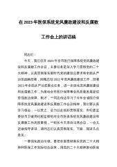 在2023年医保系统党风廉政建设和反腐败工作会上的讲话稿 同志们: 今天,我们召开2023年全市医疗保障系统党风廉政建设和反腐败工作会议,主要任务是深入学习贯彻党的二十大精神,认真贯彻落实新时代党的建设总要求和全面从严治党战略部署,回顾总结2022年党风廉政建设工作,部署2023年全面从严治党重点任务,进一步深化党风廉政建设和反腐败工作,为推动全市医疗保障事业高质量发展提供坚强政治保障。刚才,**同志传达学习了今年全省医疗保障系统党风廉政建设和反腐败工作会议精神,我们要认真学习领会,一以贯之、全力以赴抓好贯彻落实。市纪委监委驻市卫健局纪检监察组对全市医保系统党风廉政建设和反腐败工作高度重视...