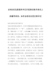 在村(社区)党组织书记示范培训班开班式上的辅导讲话稿:如何当好村社党支部书记