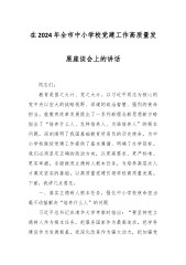 在2024年全市中小学校党建工作高质量发展座谈会上的讲话稿