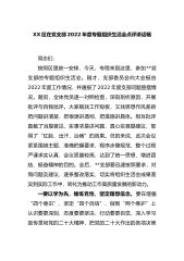 XX区在党支部2022年度专题组织生活会点评讲话稿