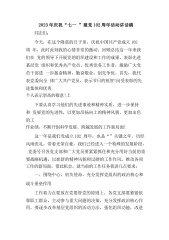 2023年庆祝“七一”建党102周年活动讲话稿尊敬的各位领导,亲爱的同志们:大家好!今天,我们正值建党102周年的重要时刻,我感到非常荣幸能够在这里给大家带来一堂专题党课。首先,让我们共同回顾一下中国共产党的历史。中国共产党是中国工人阶级的先锋队,是中国人民的先锋队。建党的初衷是为了实现中国人民的解放和国家的独立,为中国人民谋幸福、为中华民族谋复兴。党的诞生,标志着中国历史上从此开启了一个全新的篇章。经过数十年的奋斗和牺牲,中国共产党领导人民成功地实现了新民主主义革命的胜利,建立了中华人民共和国,开创了中国特色社会主义事业。共和国的成立,标志着中华民族从此站起来了,中国脱离了半殖民地半封建社会...
