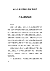 在企业学习贯彻主题教育动员大会上的讲话稿 同志们: 根据中央和省委统一部署,今天,集团党委召开学习贯彻习近平新时代中国特色社会主义思想主题教育动员大会,主要任务是深入学习贯彻习近平总书记在中央主题教育工作会议上的重要讲话和省委主题教育动员大会精神,对集团开展主题教育进行动员部署。刚刚**同志传达了习近平总书记在中央主题教育工作会议上的重要讲话精神和全省学习贯彻习近平新时代中国特色社会主义思想主题教育动员大会精神,我们要认真学习领会,抓好贯彻落实。 根据会议议程,我先代表集团党委就如何开展主题教育讲几点意见,等会***组长还将做指导讲话,请大家务必认真学习,深刻领会,提高认识,迅速行动,确...