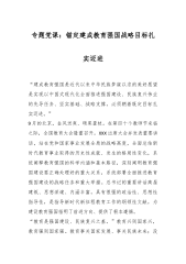 总结历史经验奋力开创新时代高校教师队伍建设新局面同志们:教育是推动经济社会高质量发展的基石,教师是教育基石的奠基者,直接承担着加快建设教育强国、办好人民满意教育的时代重任。高等教育是教育强国建设的“龙头”,是深入实施科教兴国战略、人才强国战略、创新驱动发展战略的关键环节,而高校教师队伍是这个关键环节中的关键主体。长期以来,党和国家高度重视教师队伍建设。1985年设立教师节是我国教育改革发展过程中的标志性事件,切实提高了人民教师的政治地位、社会地位和职业地位,逐渐形成了全党全社会尊师重教的风尚。党的十八大以来,党中央站在新的历史起点上统筹部署教育科技人才一体改革,全面加强高校教师队伍建设,取得了...