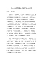 在Xx县名师工作坊主持人和名师培养对象庆祝第39个教师节座谈会上的讲话各位老师、同志们:大家好!在第39个教师节即将到来之际,有机会同各位名师见面,并听取大家的心声,我感到十分高兴。在此之前我认真看了X县教育局微信公众号推送的“坊主风采”和“名师风采”专题报道,刚才又听了大家的发言,我深受鼓舞和启发,对大家充满信心和期待。你们是学为人师、爱岗敬业勇于担当、无私奉献的先进典型,你们在平凡的岗位上绽放着绚烂的光彩,在育人的实践中收获着别样的幸福,值得全县广大教师学习。在此,我代表县委教育工委、县教育局向你们,并通过你们向全县教师致以节日的问候和美好的祝愿!对你们为教育事业的付出表示衷心的感谢和崇高...