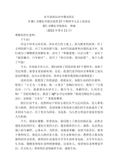 第37个教师节在体校(十八中)退休教师恳谈会上的讲话铜陵市青少年体育运动学校书记查来军(2021年9月12日)各位老师同志们:下午好!倾尽丹心育桃李,奉献韶华铸师魂。今天,是人民教师我们大家共同的节日,所以,首先祝各位教师节节日快乐!上午,我在市政府报告厅,参加了我市第37个教师节表彰庆祝大会,会议隆重而热烈,我们18中校区也有3位接受表彰,这是18中全体的骄傲!下午,我们怀着无比崇敬和激动的心情,欢聚在一起,为我校光荣退休的徐心意主任和周元根老师举行退休欢送会,感谢二位为铜陵18中也是老二中、为党和人民的教育事业做出的巨大贡献。同时,我也代表学校全体教职工向两位老师表示最真诚的敬意和最美好的...