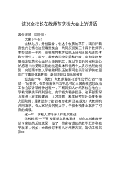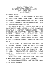 在2021年秋季开学典礼暨教师节庆祝大会上的讲话石家庄市第十四中学校长安国星(2021年9月6日)老师们、同学们:首先,我们对刚刚告别小学校园,加入十四中大家庭的新初一同学表示热烈的欢迎!秋高气爽,岁月静好。当你们踏入阔别了一个暑假的校园,相信大家会为学校发生的变化感到欣喜!国庆节前后,我们还将陆续实施一系列改造提升。届时,我们的教学设施、办学条件、育人环境将会有一个质的飞跃!作为校长,我更高兴的是,寂静了近五十天的校园,因为你们的返校而重新变得生机勃勃!与我们校园基础设施方面的变化相比,每一名教师、每一名学生,才是我们14中最美的风景!国运兴衰,系于教育。教师的工作,关系民族复兴和家庭幸福。...