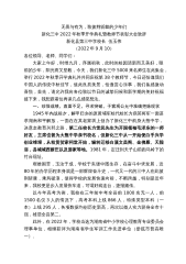 无畏与有为,致披荆斩棘的少年们新化三中2022年秋季开学典礼暨教师节表彰大会致辞新化县第三中学校长伍玉伟(2022年9月10)各位领导、老师、同学们:大家上午好,时维九月,序属初秋,此时的校园清新而又美好,眼前的少年,阳光而又坚毅,今天,我们新化三中5000来名师生在此集会,举行2022年秋季开学典礼并共同庆祝第38个教师节,今日还恰逢我们中国人的传统中秋佳节,值此良辰美景,恰逢赏心乐事,我们备感激动喜悦,首先,请允许我向各位致以节日的诚挚问候和新学期的美好祝福接下来,我想跟诸位再谈几点感受想法。一、珍惜成绩,直面不足,寻求突破,于客观公允中准确把脉现状1945年内战前夕,解甲归乡的原黄埔军校...