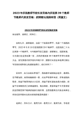2023年庆祝教师节校长发言稿与庆祝第39个教师节教师代表发言稿:躬耕教坛强国有我(两篇文)