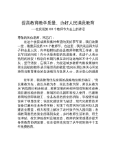 提高教育教学质量、办好人民满意教育 ----在庆祝第XX个教师节大会上的讲话
