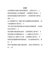 目录以高质量机关党建引领高质量发展 ( 区委办主任 ) 1抓好基层党建办人民满意教育 ( 区委教育工委书记 ) 2抓好基层党建提升城市管理水平 ( 区城管局党工委书记、局长 ) 3以人民健康为中心 党建引领卫生健康事业高质量发展 ( 区卫生健康局党工委书记 ) 4“四个坚持”抓好基层党建 助力供销社高质量发展 ( 区供销社党工委书记 ) 5强化党建引领促进国企发展 ( 区国资委党工委书记 ) 6强化党建引领 凝聚发展合力 ( 工业园区党工委书记 ) 7汇聚强大合力 服务中心大局 ( 区委两新工委书记 ) 8抓好基层党建服务城市更新改造 ( 区住建局党组书记、局长 ) 9筑牢主责强基础 党建引领...