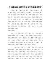 人社局2023年民主生活会主持词参考范文与在专题研讨交流会上的讲话范文