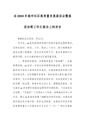 典型发言:强化党建引领扛牢驻地担当奋力夺取疫情防控和经济社会发展双胜利(街道党工委、办事处)各位领导,同志们:*街道是市委、市政府驻地街道,辖*个城市社区、*个村居,辖区有区级以上单位*个,常住人口*万,流动人口*万,共有基层党组织*个,直管党员*名。面对突如其来的新冠肺炎疫情,我们克服“境外来人多、流动人口多、单位部门多”的多重防控压力,扛牢“守卫群众生命健康、捍卫市区疫情防线”的使命担当,为打赢疫情防控阻击战贡献*力量。一是果断亮剑,迅速织密社区疫情防控网。“疫情就是命令,时间就是生命”。坚持迅速响应,全线防控。按照市委、区委防疫部署,农历去年腊月*日街道成立疫情防控指挥部,抽调*人集中办...