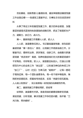 夯实基础,创新思路以最高标准、最实举措推动基层党建工作全面过硬——街道党工委副书记、办事处主任交流发言材料从事了将近三年的基层党建工作,最大的体会就是,加强基层党建是巩固党的执政基础的战略任务,抓实了就是抓生产力、凝聚力、执行力、战斗力。第一,基层党建工作需要人人抓,抓人人人人抓,就是要责任到人。书记重视基层党建,担负起抓基层党建“第一责任人”责任,以党建工作统领全面工作。分管副书记,要研究业务,抓好落实,创新工作。全面推行抓基层党建“双述双评”制度,培养和鼓励他们在大抓基层党建中干好角色、尽好职责。抓人人,就是要目标到人。打造以分管领导为中心的业务工作“独立团”,以科室为单位的专项工作“加工...