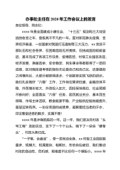 办事处主任在2020年工作会议上的发言各位领导、同志们:xxxx年是全面建成小康社会、“十三五”规划和三大攻坚战的收官之年,是极其不平凡的一年。面对新冠肺炎疫情、世界经济衰退、一些国家对我国打压遏制等三大压力,xx党员干部队伍和社会各界,在困难面前无所畏惧,在挑战面前砥砺奋进,基本完成了各项工作任务,疫情防控、村级工业园区改造、经济发展、换届选举、安全稳定、民生事业等都取得了一定的成绩,区对我街道考核的指标无论是自己和自己比、还是镇街之间横向比,大部分都获得进步,个别甚至实现飞跃的进步。我们扎实做好“六稳”工作,工作岗位需求旺盛、金融总体平稳、外贸增长较大、外资投入加大、固投保持高位、社会预期...