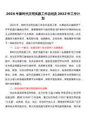 202X年新时代文明实践工作总结及2022年工作计划202X年,新时代文明实践工作在街道党工委、办事处的正确领导下,牢牢把握正确舆论导向,紧紧围绕学习宣传贯彻XJP新时代中国特色社会主义思想和党的十九大精神,以建设社会主义核心价值体系为主线;以志愿服务为基本形式,集思想引领、道德教化、文化传承、便民服务等功能于一体的综合平台,现就工作开展情况总结如下:一、立足1个模式:党建引领+多元协同+志愿服务新时代文明实践工作,坚持“党建引领+多元协同+志愿服务”的工作模式;各社区利用已建成的党员志愿服务队伍开展各类文明实践活动,在实践中,突出党建引领、党员先锋作用。激发党员模范带头作用,发挥党员在乡风文...