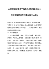 XX区委组织部关于加强人才队伍建设助力优化营商环境工作落实情况的报告