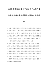 X局关于落实XX县关于自治区“八五”普法规划实施中期评估指出问题整改情况报告为全面贯彻落实党的二十大精神,推动自治区党委依法治区办开展“八五”普法规划实施中期评估指出的问题整改落实,推进“八五”普法规划深入实施,我局对照《XX县关于自治区“八五”普法规划实施中期评估指出问题整改方案》自查自纠,举一反三,现将我局整改情况汇报如下:一、学习宣传习近平法治思想不够系统、全面针对学习宣传习近平法治思想不够系统、全面。我局党支部举一反三,习近平总书记关于法治建设的重要指示及中央关于法治建设的决策部署列入局党组理论学习中心组及各股室集体学习内容,并形成常态化学习机制,局党支部重新制定学习计划,继续推进习近...