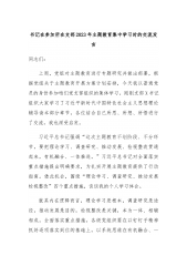书记在参加所在支部2023年主题教育集中学习时的交流发言同志们:上周,党组对主题教育进行专题研究并做出部署,根据党组关于主题教育开展方案计划安排,今天我以普通党员的身份参加咱们党支部组织的集体学习。刚刚支部X书记组织大家学习了习近平新时代中国特色社会主义思想理论辅导读本部分章节,各位结合自己所思、所想、所悟进行了交流,我也深受启发。习近平总书记强调“这次主题教育不划阶段、不分环节,要把理论学习、调查研究、推动发展、检视整改贯通起来,有机融合、一体推进。”习近平总书记对全面落实重点措施提出明确要求,为扎实开展主题教育提供了行动指南。借此机会,围绕“理论学习、调查研究、推动发展检视整改”四个重点措...