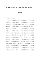 市国资委2024年工作情况总结及2025年工作计划一、工作开展情况(一)坚持改革破题,布局结构持续优化。一是国企改革三年行动扎实推进。重点改革任务按期完成,全市国有企业改革任务总体完成率达到103.25%。混合所有制改革和整合重组有序推进,市属企业混改户数占比达78.16%,资产证券化率达65%。“三供一业”分离移交和僵尸企业处置工作全面完成,市属企业退休人员社会化管理移交工作实现全覆盖。厂办大集体改革基本完成,妥善安置职工1447人。二是市场化转型步伐加快。制定《市属企业国有资本授权经营体制改革实施方案》,以“四个一批”为重点方向,大力推行“两非两资”相关政策,分类分批推进国有企业混合所有制...