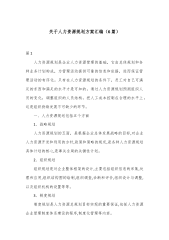 关于人力资源规划方案汇编(6篇)篇1 人力资源规划是企业人力资源管理的基础,它由总体规划和各种业务计划构成,为管理活动提供可靠的信息和依据,进而保证管理活动的有序化。只有在人力资源规划的条件下,员工对自己可满足的东西和满足的水平才是可知的。通过人力资源规划预测组织人员的变化,调整组织的人员结构,把人工成本控制在合理的水平上,这是组织持续发展不可缺少的环节。 一、人力资源规划包括五个方面 1、战略规划 人力资源规划的五面,是根据企业总体发展战略的目标,对企业人力资源开发和利用的方针,政策和策略的规定,是各种人力资源规划具体计划的核心,是事关全局的关键性计划。 2、组织规划 组织规划是...