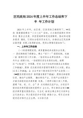 区民政局2024年度上半年工作总结和下半年工作计划.docx