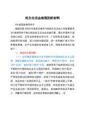 民主生活会检视剖析材料XX镇党政领导班子根据区委2020年度党员领导干部民主生活会工作部署要求,XX镇领导班子精心制定民主生活会实施方案,通过开展班子成员谈心谈话、召开会前座谈会等方式,广泛听取意见建议,系统梳理共性问题,深入剖析问题原因,进一步明确了努力方向和整改措施,从严从实做好各项准备工作。现将具体情况汇报如下:一、存在的主要问题(一)在学懂弄通做实习近平新时代中国特色社会主义思想,把握正确政治方向,提高政治能力,增强“四个意识”、坚定“四个自信”、做到“两个维护”方面。镇领导班子始终坚持以习近平新时代中国特色社会主义思想为指导,牢固树立“四个意识”、坚定“四个自信”、做到“两个维护”,...