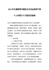 2022年市人大常委会党组班子民主生活会对照检查材料(l六个方面)