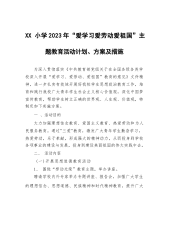 XX小学2023年“爱学习爱劳动爱祖国”主题教育活动计划、方案及措施