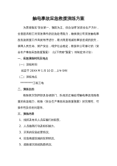 触电事故应急救援演练方案为贯彻落实“安全第一、预防为主、综合治理”的安全生产方针,全面提高职工对突发事件的应急处理能力,确保我公司突发触电事故应急救援工作高效有序进行,最大限度地减轻事故造成的损失,保障人民生命、财产安全,维护社会稳定,根据本公司修订的《安全生产事故应急救援预案》(以下简称“预案”)特制定本计划:一、应急演练时间及地点(一)演练时间拟定于20XX年1月10日,上午9时(二)演练地点*********工程工地二、演练目的检验救灾指挥部及各级部门、队组的正确处理触电事故抢险救援的应急能力,检验《安全生产事故应急救援预案》的完整性、可操作性及存在问题等。三、演练内容1、指挥及有关人员...