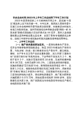 市农业农村局2023年上半年工作总结和下半年工作计划