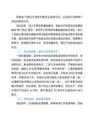部参加“大整治大清理大擦洗”志愿者活动,以实际行动保障十四运的胜利召开。强化监督,深入开展党风廉政建设。党政办严格落实党风廉政建设“两个责任”要求,实时学习贯彻党风廉政建设相关规定,制订了党政办整治群众腐败作风问题及漠视侵害群众利益问题专项实施方案。组织党政办领导干部参加党党规法律知识测试、观看警示教育片、参观图片展等方式,营造崇廉尚实、遵纪守法的良好政治生态。(二)突出高质量,提升公文管理水平一是机要保密。及时安全地完成各类机要保密文件的收发、登记和流转;安全规范使用各类印章。组织党政办全体领导干部学习保密知识,参加保密在线考试。二是公文收发流转。严格执行收发文制度,确保公文办理“事事有着落...