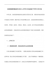 自然资源和规划局2022上半年工作总结及下半年工作计划今年以来,自然资源和规划局认真落实示范区党工委、管委会和省自然资源厅党组的工作部署,聚焦年度工作目标和重点任务,在抓好疫情防控的基础上,优空间、护资源、促民生,讲政治、勇担当、走在前,奋力开创自然资源事业改革发展新篇章,为推动经济社会高质量发展提供了强有力的资源保障。现将具体情况总结如下:一、上半年工作(一)聚焦精准保障,有效促进经济社会发展高质量1.国土规划编制工作全面开展。一是重点推进国土空间总体规划编制工作,起草印发《国土空间总体规划编制工作方案》,提出“市镇两级合一”编制思路,完成国土空间总体规划招标工作,目前正在开展调研和专题研究...