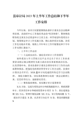2023今年以来,县审计局紧紧围绕县委审计委员会会议精神和县委、县政府中心工作做好常态化“经济体检”,聚焦财政财务收支真实合法效益审计主责主业,科学谋划年度项目计划,统筹制定审计工作实施方案,精心组织项目实施,各项工作扎实稳步开展。现将上半年审计工作开展情况和下半年工作安排汇报如下。一、上半年工作总结(一)立足政治站位,强化党对审计工作的领导始终把深入学习贯彻习近平总书记关于审计工作的重要讲话指示批示精神作为重大政治责任和重要政治任务,认真贯彻中央、某市县委审计委员会领导对审计工作作出的部署和要求,把强化党的领导贯穿审计工作全过程。县委审计委员会召开后,XXX县审计局迅速组织传达学习会议精神,...