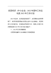 民营经济(中小企业)2022年度年工作总结及2023年工作计划