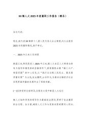 XX镇人大2025年度履职工作报告(精品)各位代表:现在,我代表XX镇第十八届人民代表大会主席团,向大会报告2025年的履职情况,请予审议。一、2025年以来工作回顾换届以来,特别是进入2025年以来,镇人大在区人大常委会的有力指导和镇党委的坚强领导下,紧紧围绕全镇“强工兴产、转型突围”的中心任务,以“践行全过程人民民主、服务高质量发展”为主线,依法履职,主动作为,为推动全镇经济社会实现更高质量的发展作出了积极贡献。(一)坚持党的全面领导,在服务大局中彰显人大站位镇人大始终将党的领导作为最高政治原则,贯穿于依法履职的全过程、各方面,确保人大工作与党委决策部署同心同向、同频共振。一是强化思想理论...