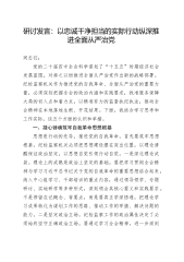 研讨发言:以忠诚干净担当的实际行动纵深推进全面从严治党同志们:党的二十届四中全会科学谋划了“十五五”时期经济社会发展蓝图,对持之以恒推进全面从严治党作出新的战略部署。纪检监察机关作为推进党的自我革命、全面从严治党的重要力量,必须深刻把握全会的政治内涵和实践要求,找准服务保障大局的切入点和着力点,以精准有力的监督执纪执法,推动全会精神在本地落地生根、开花结果。下面,我结合学习思考和工作实际,谈五个方面的认识和举措。一、凝心铸魂筑牢自我革命思想根基思想是行动的先导,推进党的自我革命,首先要筑牢思想根基。纪检监察机关必须把思想建设摆在突出位置,以理论清醒保证政治坚定,以思想自觉引领行动自觉。一是深化...