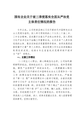 国有企业关于前三季度落实全面从严治党主体责任情况的报告.docx