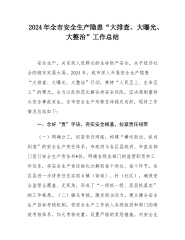 2024年全市安全生产隐患“大排查、大曝光、大整治”工作总结