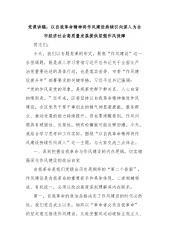 党课讲稿:以自我革命精神将作风建设持续引向深入为全市经济社会高质量发展提供坚强作风保障同志们:今天,我们以专题党课的形式,聚焦“作风建设”这一永恒课题,既是深入学习贯彻习近平总书记关于全面从严治党重要论述的具体行动,也是落实省委、市委“作风建设提升年”部署要求的关键举措。习近平总书记强调:“党的作风是党的形象,是观察党群干群关系、人心向背的晴雨表。”近年来,区委坚持以自我革命精神推进作风建设,全区党员干部干事创业的精气神显著提振,服务群众、推动发展的能力持续提升。但也要清醒看到,作风问题具有顽固性、反复性,稍有松懈就可能反弹回潮。今天,我结合学习思考和工作实际,围绕“以自我革命精神将作风建设持...