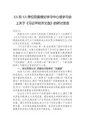 XX在XX单位党委理论学习中心组学习会上关于《习近平经济文选》的研讨发言
