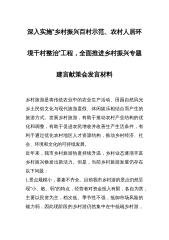 深入实施“乡村振兴百村示范、农村人居环境千村整治”工程,全面推进乡村振兴专题建言献策会发言材料