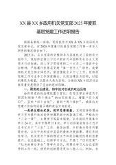 XX县XX乡政府机关党支部2025年度抓基层党建工作述职报告