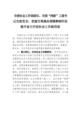 市委社会工作部部长、市委“两新”工委书记交流发言:党建引领强治理 精耕细作促提升 奋力开创社会工作新局面.docx