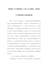 专题党课:学习贯彻党的二十届三中全会精神,以新质生产力推动国有企业高质量发展 党的二十届三中全会强调,要“完善推动高质量发展激励约束机制,塑造发展新动能新优势”。新质生产力是由新质劳动者、劳动资料、劳动对象构成的生产力,是由技术革命性突破、生产要素创新性配置、产业深度转型升级而催生的先进生产力质态,具有高技术含量、高效率和高质量特征。新质生产力不仅会形成经济发展的新动能、新优势,也会形成企业发展的新动能、新优势,催生新产业、新业态、新模式。国有经济是新质生产力和新型生产关系的重要载体和建设主体,是完整、准确、全面贯彻新发展理念的主力军和排头兵,在高质量发展中起到引领和主导作用,并对中国式现代...